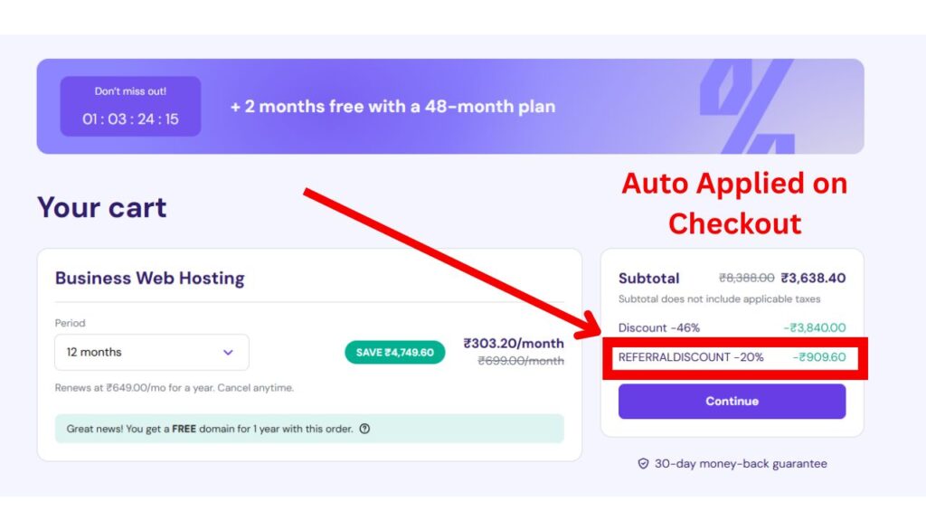 - Click on Apply Coupon Code (Redirect to Hostinger).
